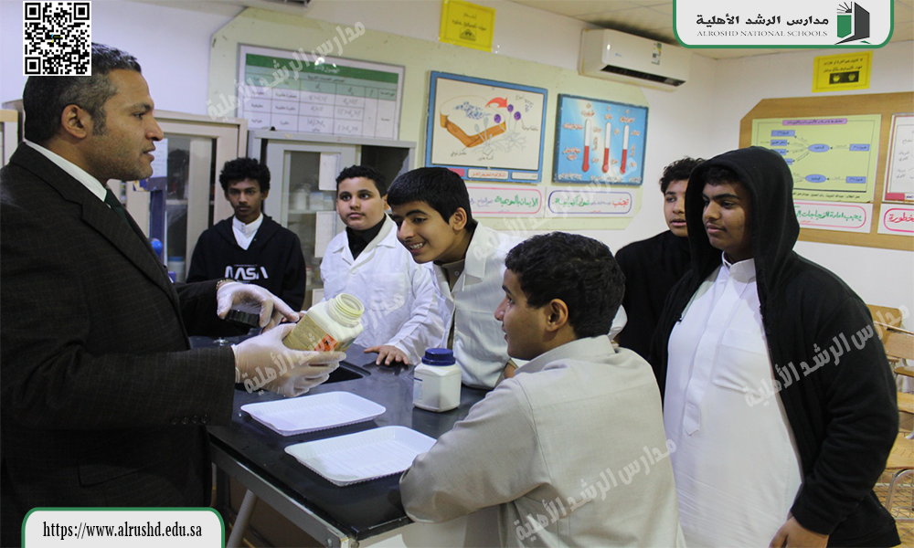 في إطار تنمية مهارات الطلاب الموهوبين وتعزيز شغفهم بالعلوم ، نفذ الأستاذ سعد شاكر برنامجًا علميًا تحت عنوان “سحر الكيمياء” مع بعض الطلاب الموهوبين بالقسم الثانوي يوم الأربعاء الموافق 3 / 6 / 1446 هـ
