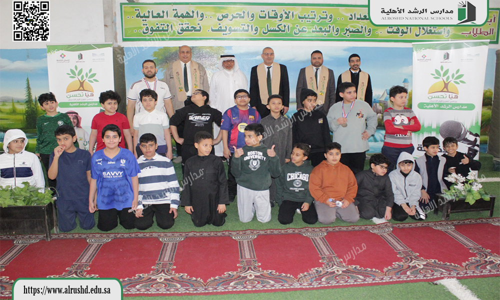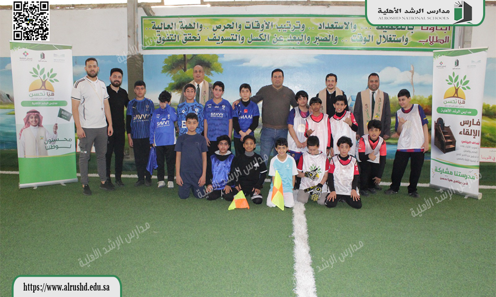 اختتمت ابتدائية الرشد الأهلية دوري إحسان لكرة القدم المدرسي في أجواء حماسية، بحضور سعادة المدير التنفيذي الأستاذ/ حماد بن محمد الحماد ومدير التدريب والتطوير والجودة الدكتور/ محمد صلاح ووكيل المدرسة الأستاذ / حسين سليمان، إلى جانب أولياء الأمور والطلاب.