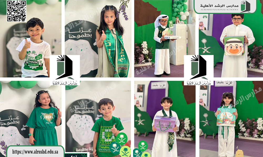 احتفت روضة الرشد يوم الخميس الموافق 3 / 4 / 1447هـ باليوم الوطني ٩٥ تحت شعار ( عزنا بطبعنا ) واكتست ساحة الروضة طابعًا مميزًا باللون الأخضر ، تضمن الاحتفاء عدة فعاليات : ضع بصمتك _ ركن التلوين _ ركن التصوير _ وتوزيعات الأطفال،