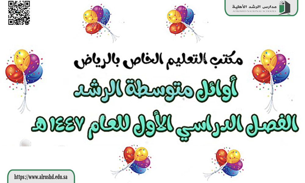 تتشرف متوسطة الرشد الأهلية بنين بأن تعلن عن اعتماد نتائج الاختبارات النهائية للفترة الدراسية الأولى من الفصل الدراسي الأول للعام الدراسي 1447 هـ، وقد أظهرت النتائج تفوقًا وتميزًا من قِبل طلاب المدرسة، مما يعكس جهودهم ومثابرتهم طوال الفصل الدراسي الأول، ويجسد في الوقت ذاته العناية والاهتمام الذي تقدمه إدارة المدرسة والهيئة التعليمية والإشرافية.