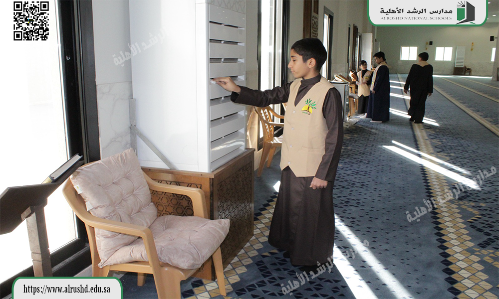 حرصًا من ابتدائية الرشد الأهلية بنين على غرس القيم مثل الإحسان والعطاء والعمل التطوعي في نفوس الطلاب والمشاركة المجتمعية تقوم ابتدائية الرشد الأهلية بنين بأعمال تطوعية من طلابنا مثل ( الاهتمام ببيوت الله ) الذي قدمه طلابنا مع توجيه المعلم كلمة عن حب المساجد وآداب المساجد ، علمًا بأن الأعمال التطوعية أصبحت من شروط التخرج للطلاب في المرحلة الثانوية لذا كان سعينا لتحقيق جميع الأهداف التي من شأنها النهوض بالعملية التعليمية والتربوية.