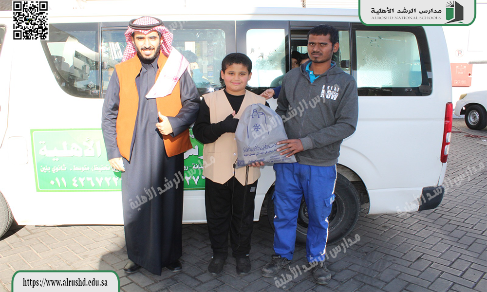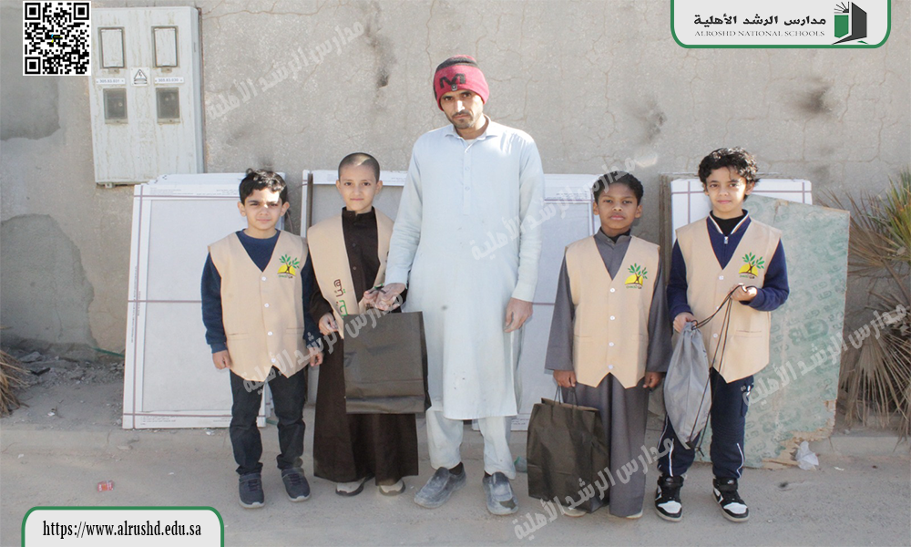حرصًا من مدارسنا مدارس الرشد على غرس القيم مثل الإحسان والعطاء والعمل التطوعي في نفوس الطلاب والمشاركة المجتمعية تقوم ابتدائية الرشد الأهلية بنين بأعمال تطوعية من طلابنا لتقديم العون لمن يستحقونه وغيرها من الأعمال مثل ( كسوة شتاء ) الذي قدمه طلابنا ، علمًا بأن الأعمال التطوعية أصبحت من شروط التخرج للطلاب من المرحلة الثانوية لذا كان سعينا لتحقيق جميع الأهداف التي من شأنها النهوض بالعملية التعليمية والتربوية.