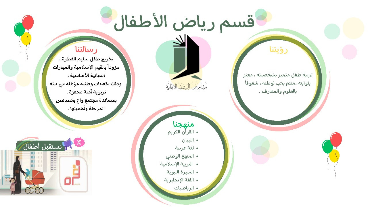يهدف النظام التعليمي في مدارس الرشد إلى غرس العقيدة الإسلامية في نفوس النشء، وإكسابهم المعارف والمهارات، وتهيئتهم ليكونوا أعضاء نافعين في بناء مجتمعهم، محبين لوطنهم، معتزين بتاريخه.