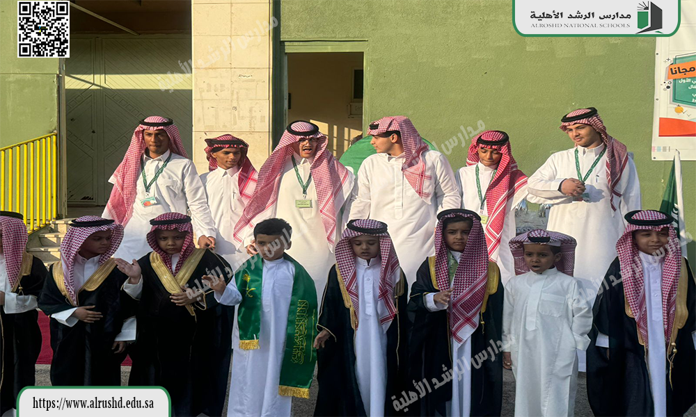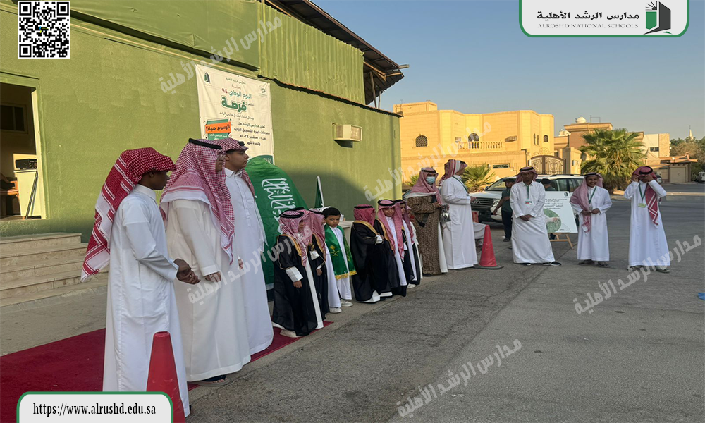 قامت مدرسة الرشد قسم البنات بقيادة الأستاذة منيرة الصليهم  بمشاركة مجتمعية مع مدرسة الرشد قسم الثانوي بنين وتفعيل برنامج اليوم الوطني السعودي الــ٩٤ الذي يهدف إلى تعزيز الهوية الثقافية وإشراك الطلاب في الأنشطة الوطنية  في أجواء مليئة بالفرح والفخر  يوم الأربعاء ٢٢/٣/١٤٤٦هـ، حيث اجتمع الطلاب عند بوابة المدرسة  لاستقبال أولياء الأمور بالضيافة السعودية والعرضة النجدية بمشاركة فصل أولى بنين، لاقى الطلاب دعمًا من أولياء الأمور وتشجيعهم في العرضة.