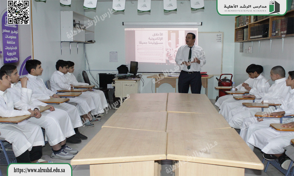 في إطار حرص مدراس الرشد الابتدائية الأهلية على تعزيز الوعي الرقمي لدى طلابها نُفِّذ برنامج توعوي بعنوان “الأخلاق الإلكترونية”، من إعداد وتقديم الأستاذ مغاوري محمد معلم الحاسب الآلي الذي قدّم للطلاب تعريفًا شاملًا بمفهوم السلوك الإيجابي والمسؤول أثناء استخدام التقنية ووسائل التواصل الحديثة.