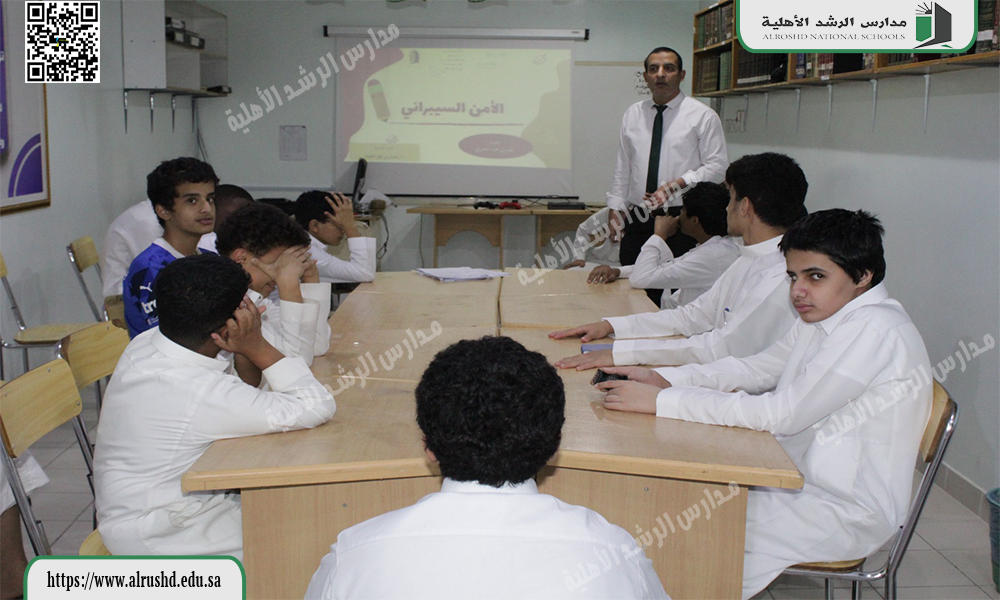 قدمت متوسطة الرشد الأهلية برنامج توعوي متكامل لتعزيز الأمن السيبراني تحت شعار “معًا لإنترنت آمن”. يهدف البرنامج إلى توعية الطلاب بمخاطر العالم الرقمي وتمكينهم من ممارسات آمنة عبر الإنترنت، من خلال الإذاعة المدرسية  ومحاضرات توعوية عن الأمن السيبراني، بالإضافة إلى معلومات إرشادية تلخص أفضل الممارسات الأمنية . يأتي هذا البرنامج انسجامًا مع رؤية المدرسة في بناء جيل واعٍ رقميًا وقادر على توظيف التقنية بشكل آمن وإيجابي .