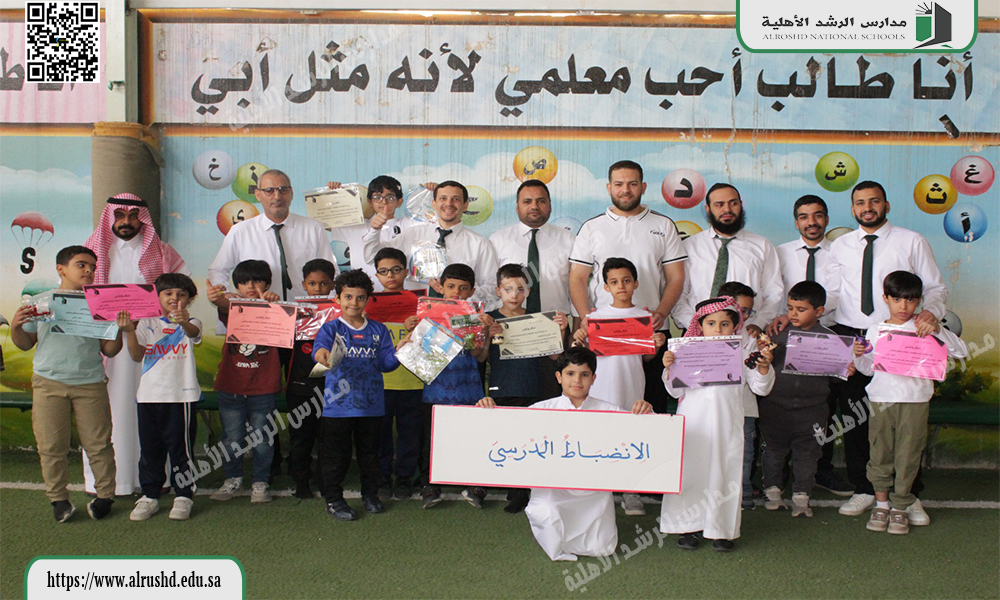 في أجواء يسودها الفخر والبهجة، أقامت مدرسة الرشد الابتدائية الأهلية حفل تكريمٍ للطلاب المنضبطين حضورًا منذ بداية العام الدراسي وحتى الآن، وذلك تقديرًا لالتزامهم وتميّزهم في الحضور والانضباط المدرسي.