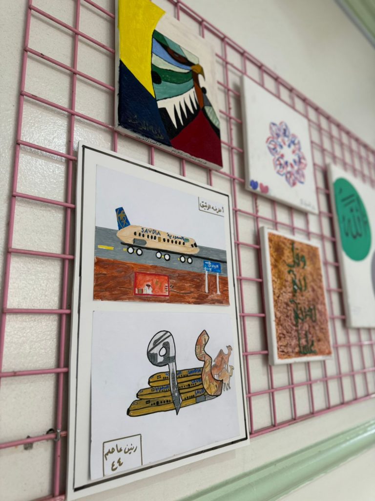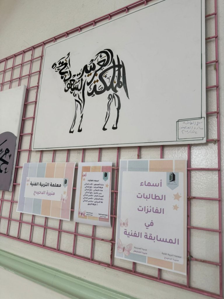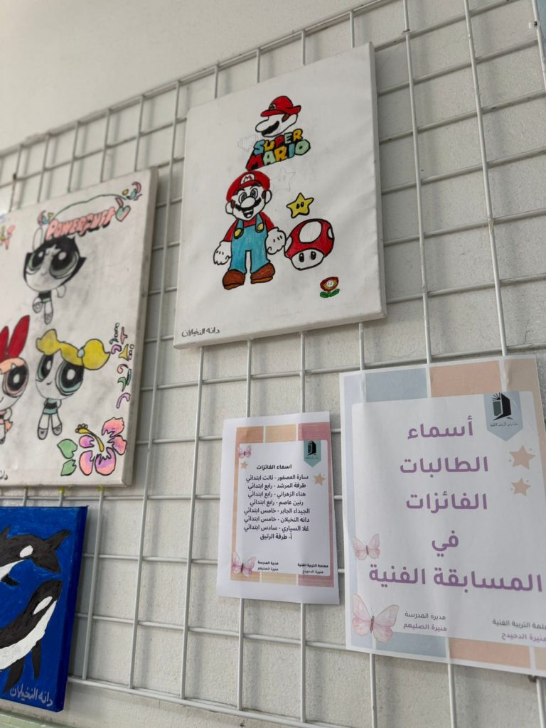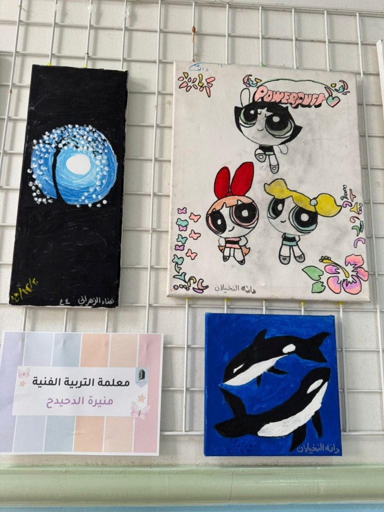 تم يوم الخميس 30 / 7 / 1446هـ بقسم البنات تكريم الطالبات المشاركات في أولمبياد الفنون من قبل معلمة التربية الفنية أ/ منيرة الدحيدح