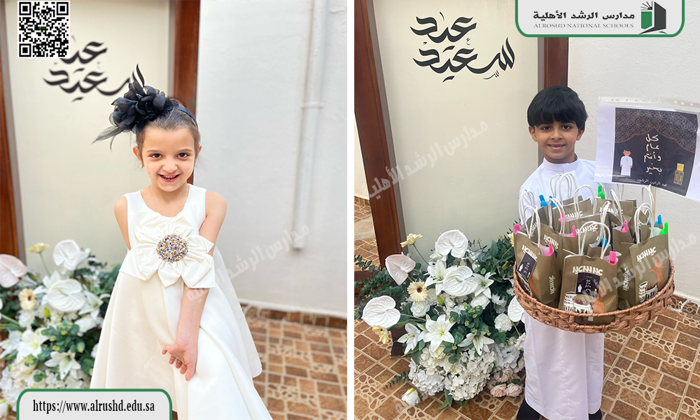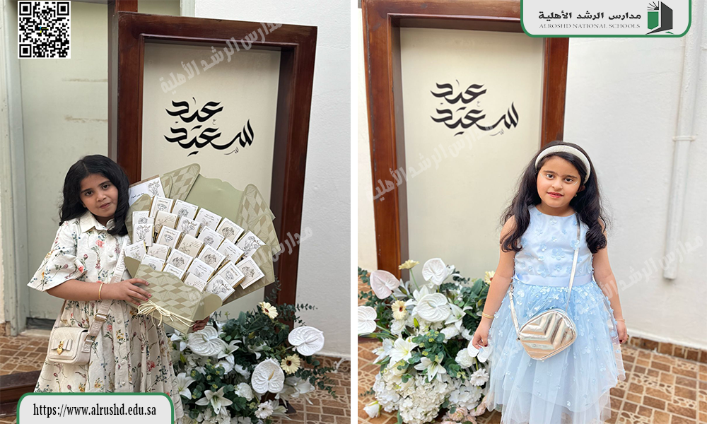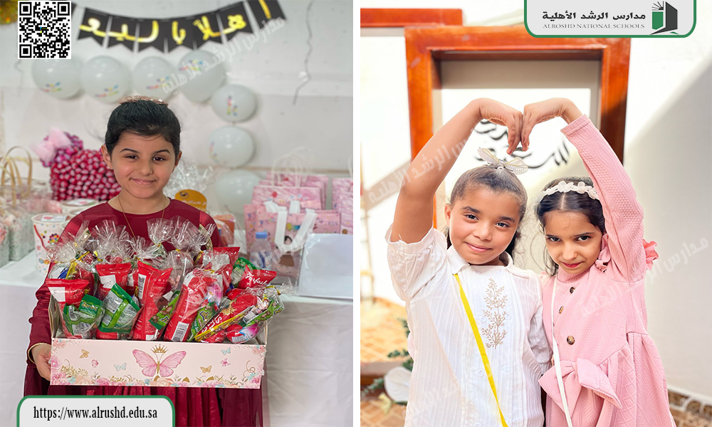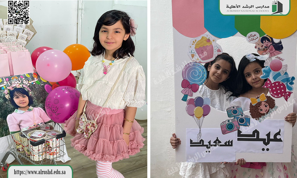 أقامت مدارس الرشد قسم ( ابتدائي – متوسط ) بنات يوم الثلاثاء الموافق 10  /  10  / 1446 هـ حفل معايدة بمناسبة عيد الفطر المبارك وسط أجواء مفعمة بالمحبة والسرور  والألفة.