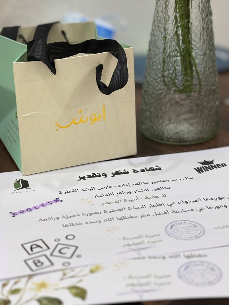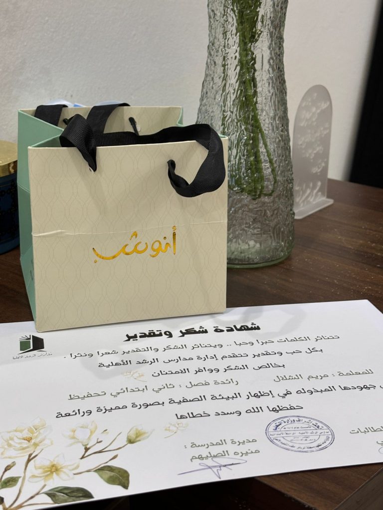 وأيضاً تم تكريم المعلمات المنضبطات  طوال الفصل بدون غياب أو استئذان حرصاً منا على نشر ثقافة الانضباط والتميز داخل المدرسة .