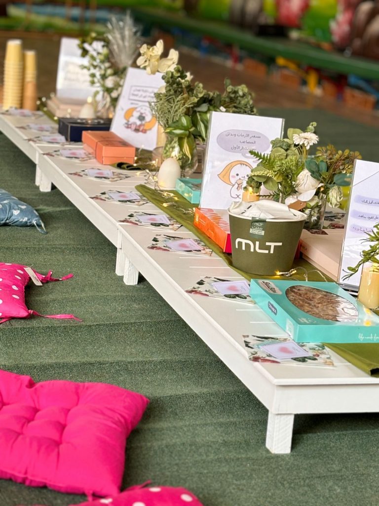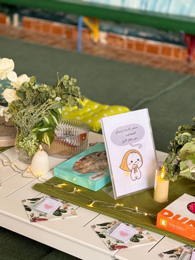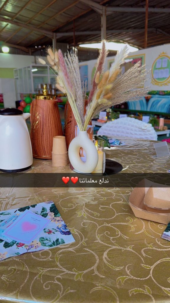 وسط فرحة عارمة من جميع منسوبات المدرسة  بإنتهاء الفصل الدراسي الأول على خير قامت إدارة المدرسة بعمل حفل للمعلمات وجميع المنسوبات نظراً لجهودهن طوال الفصل وكذلك من باب من لا يشكر الناس لا يشكر الله وأيضاً دعوة لنشر ثقافة الانتماء والتعاون والإخاء بين جميع المنسوبات وقد تضمن الحفل فطور جماعي يتخلله بعض الأنشطة والفعاليات  منتهياً بالغداء تقديراً لهن .