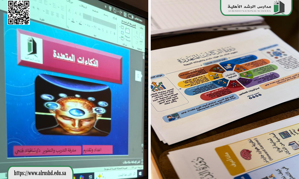 في إطار سعي مدارس الرشد – قسم البنات – إلى تعزيز الكفاءة المهنية والارتقاء بالممارسات التعليمية، أُقيمت يوم الثلاثاء الموافق 22 / 8 / 1447هـ دورة تدريبية بعنوان «الذكاءات المتعددة»، قدّمتها مشرفة التدريب والجودة الأستاذة رنيا فؤاد، مستهدفةً الكادر التعليمي.