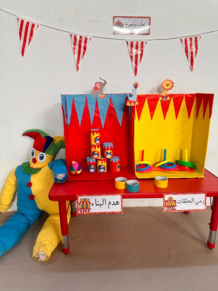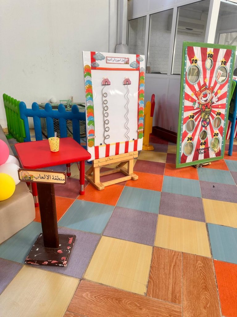 ركن الألعاب الادراكية والألعاب الحركية والمسابقات وركن الفن والابداع وركن الرسم على الوجه وركن التصوير بديكور كرنفال الرشد