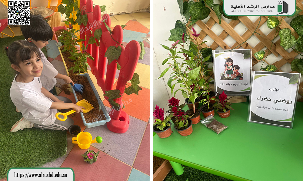 في إطار تعزيز الوعي البيئي وغرس حب الطبيعة لدى الأطفال، أطلقت مدارس الرشد قسم رياض الأطفال مبادرة للأستاذة جواهر الـ تويم بعنوان روضتي خضراء،