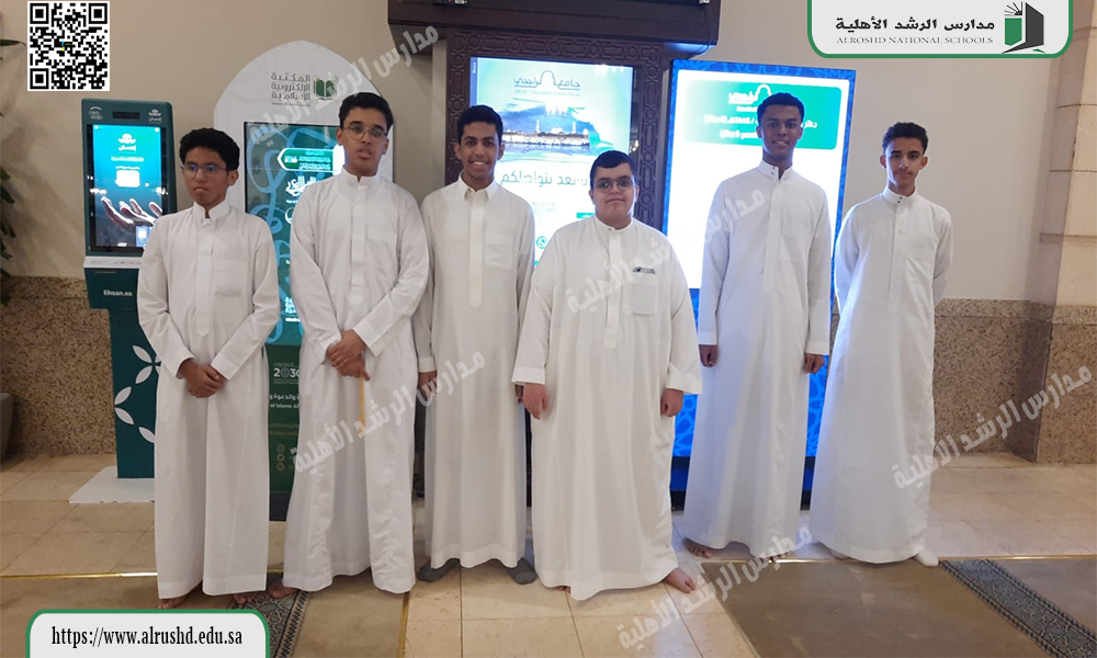 ضمن البرامج الثقافية والأعمال التطوعية ، قام طلابنا يوم الأربعاء الموافق 20 / 4 / 1446 هجرية بجولة تطوعية في جامع الراجحي بحي الجزيرة اطلعوا فيها على العديد من الأنشطة والمجالات المتوفرة بالمسجد ، حيث بدؤوا زيارتهم بمعرفة الطريقة الصحيحة لتكفين الموتى طبقًا للشريعة الإسلامية ، كما قاموا بزيارة المكتبة العامة والرقمية الموجودة بالمسجد ، والقيام بالعديد من الأنشطة التطوعية مثل ترتيب الكتب وتنظيم المكتبة وسقيا الماء من خلال توزيع عبوات الماء على مرتادي المسجد .