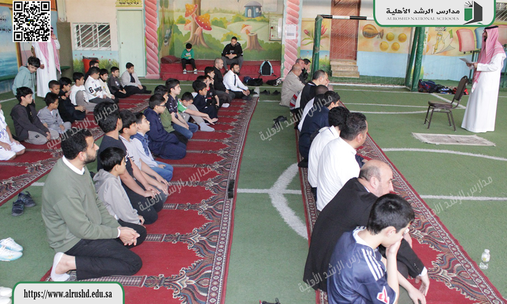 وقد أدى منسوبو المدرسة وطلابها الصلاة في أجواء إيمانية يسودها الخشوع والتضرع إلى الله سبحانه وتعالى ، وأن يعمّ بنعمه وخيره أرجاء الوطن.