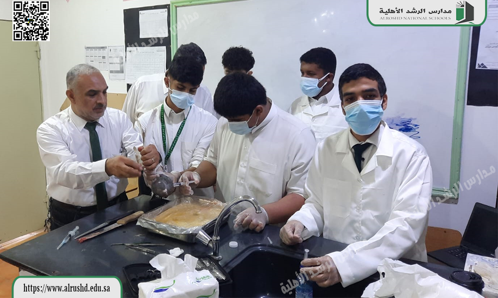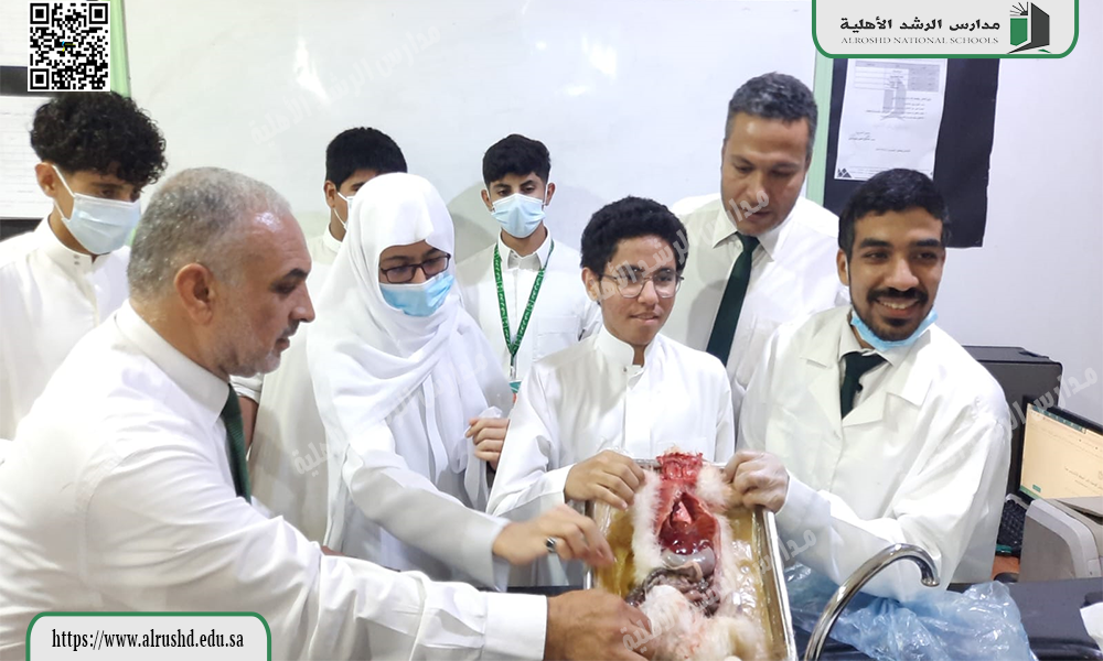 حرصًا من إدارة ثانوية الرشد الأهلية بالرياض على جعل الطالب محور العملية التعليمية، تم يوم الأربعاء الموافق 6/4/1446هـ تقديم برنانج نموذجي عملي في مختبر الأحياء لطلاب الصف الأول والثاني الثانوي بهدف التعرف على تركيب وتشريح الجسم الداخلي لنوع من الحيوانات الثديية رتبة الأرنبيات وإكساب الطلاب المهارة والدقة في التشريح ، حيث بدأ البرنامج بقيام الطلاب بتخدير الأرنب تحت إشراف المعلم وتم استخدام إحدى استراتيجيات التعلم النشط بقيام الطلاب بأنفسهم بتشريح بعض الأجزاء في جسم الأرنب.