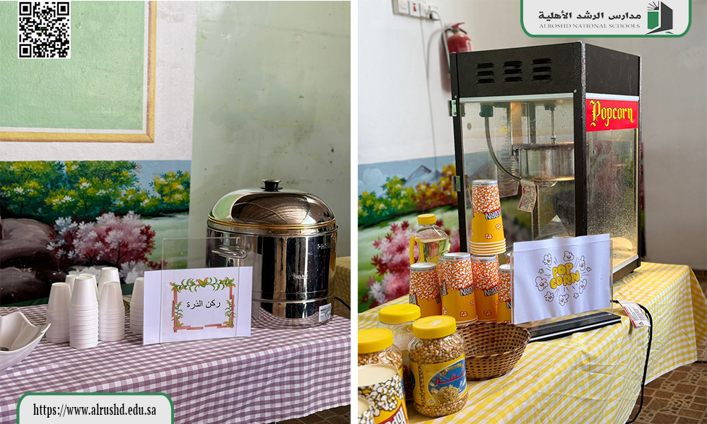 أقامت مدارس الرشد ( قسم البنات ) برنامجًا مفتوحًا للطلاب  ، وذلك ختامًا للأسبوع وتحقيقًا للجانب الترفيهي لهم ، تنوعت  الأركان بين اللعب والتسالي والمشروبات الباردة والحارة .كان ذلك يوم الخميس 2-3-1446هـ ، وارتسمت تلك اللحظات بابتسامات الطلاب وفرحهم   ، وذلك بإشراف النشاط والتوجيه الطلابي .