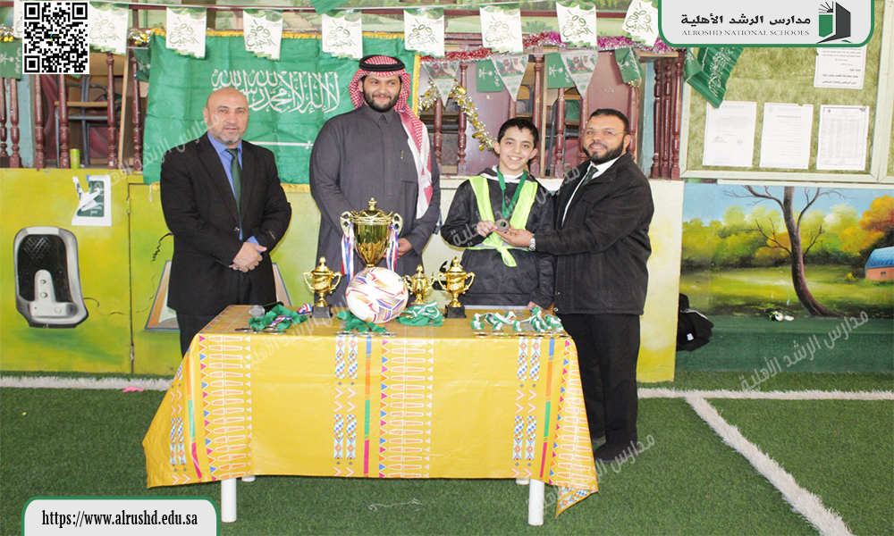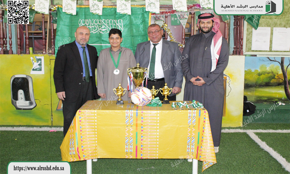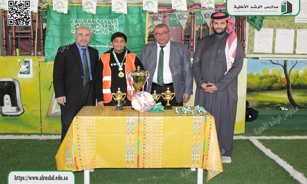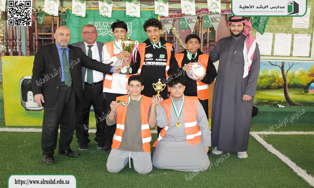 احتفلت متوسطة الرشد الأهلية بنين يوم الأربعاء : 4 / 7 / 1447هـ بإقامة مهرجان نهائي دوري كرة القدم وتكريم الفرق الفائزة للعام الدراسي الحالي، وذلك بحضور أعضاء الهيئة التعليمية والإدارية وطلاب المدرسة. وقد تم تسليم الكؤوس والميداليات للفريق الفائز، تقديرًا لجهودهم وروحهم الرياضية المتميزة وتعاونهم طوال فترة البطولة التي هدفت إلى تعزيز روح المنافسة الشريفة والقيم الرياضية بين الطلاب.
