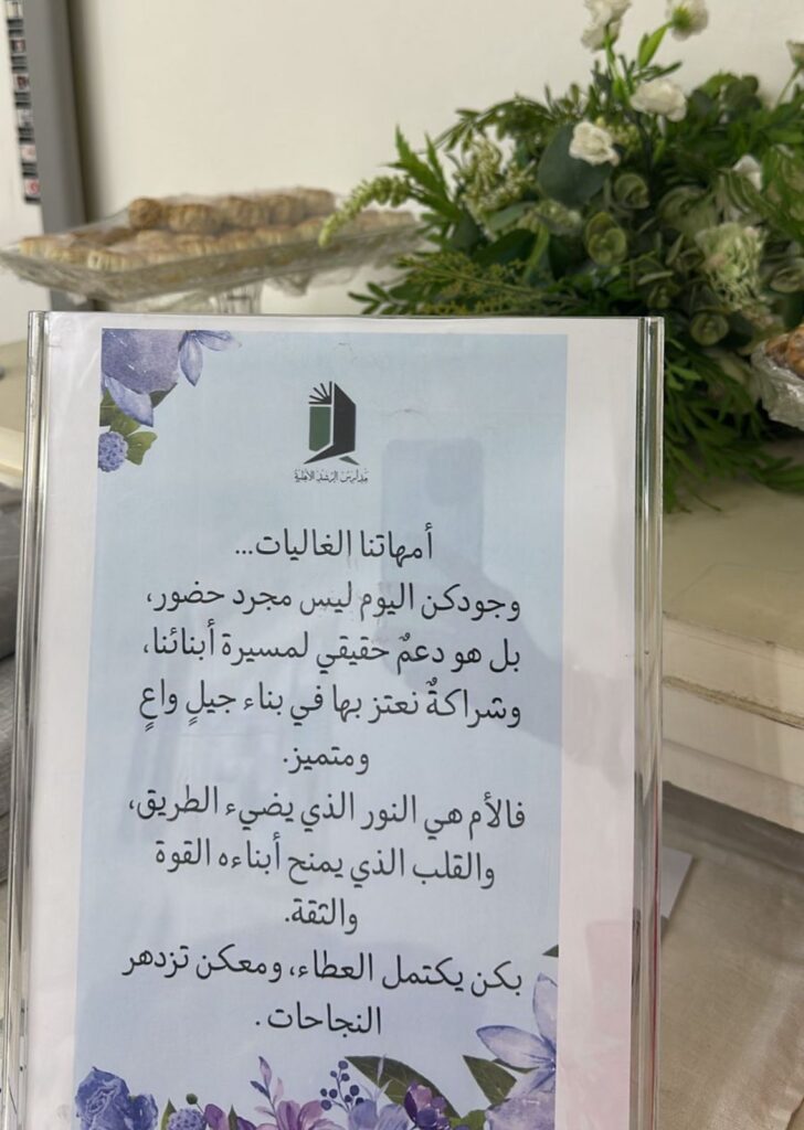 أقامت مدارس الرشد قسم رياض الأطفال مجلس الأمهات وذلك في يوم (الاثنين ) تاريخ ٢٥ /١٠ / ١٤٤٧ هـ بهدف تعزيز الشراكة بين الأسرة والروضة، ومناقشة الجوانب التربوية والتعليمية المتعلقة بالأطفال، وتبادل الخبرات والأفكار التي تسهم في دعم نموهم وتطوير مهاراتهم. وقد تضمن المجلس فقرات متنوعة، منها الحوار المفتوح مع الأمهات، وتقديم إرشادات تربوية، واستعراض أنشطة الروضة وإنجازات الأطفال، مما أضفى على اللقاء روحًا من التعاون والودّ، وحقق أثرًا إيجابيًا في دعم العملية التعليمية،