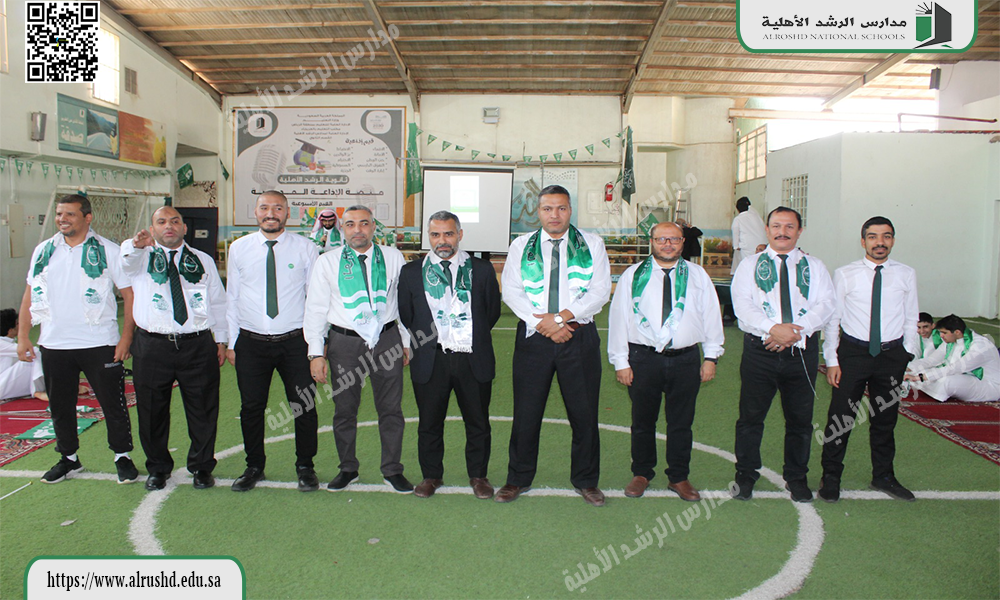 أقامت ثانوية الرشد الأهلية قسم ( البنين ) احتفالًا بمناسبة اليوم الوطني السعودي الـ 94 يوم الأربعاء الموافق 22 /3 / 1446هـ ، نفذه جميع المعلمين بالمدرسة والذي استهدف فيه جميع طلاب المدرسة بهدف الاحتفاء باليوم الوطني تحت شعار ( نحلم و نحقق ).