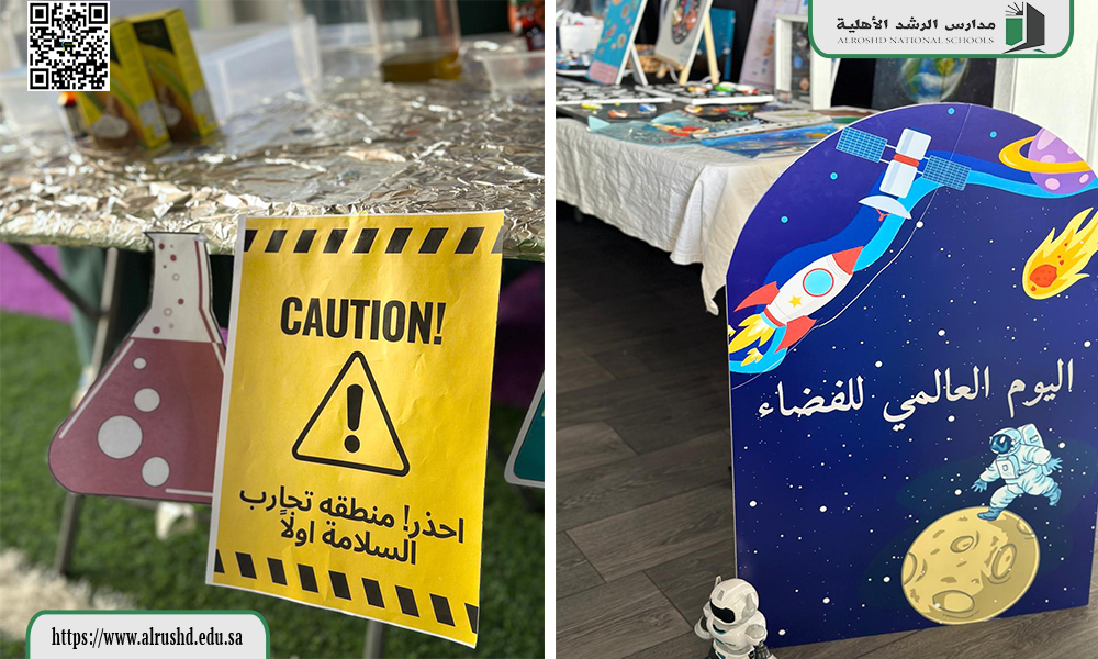 أقامت مدارس الرشد قسم ( ابتدائي – متوسط ) بنات يوم الخميس الموافق 17 / 4 / 1447هـ معرض العلوم وتم تفعيل أسبوع الفضاء وسط إبداعات الطالبات وتميزهم.