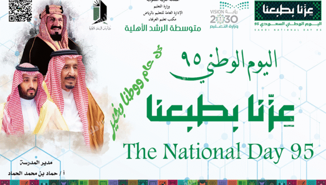 مدارس الرشد 5 أشهر ago احتفت متوسطة الرشد الأهلية باليوم الوطني 95 تحت شعار (عزنا بطبعنا) قامت متوسطة الرشد الأهلية بعدة فاعليات احتفاءً باليوم الوطني الخامس والتسعون تحت شعار عزنا بطبعنا فكل عام والمملكة العربية السعودية