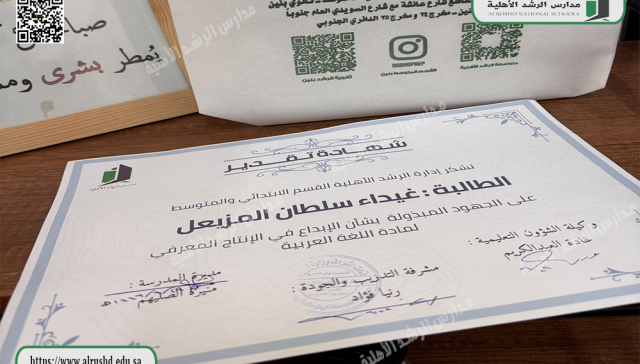 مدارس الرشد سنة واحدة ago تكريم الطالبات المشاركات في المسابقات والبرامج كرمت إدارة المدرسة الطالبة شمس العدل من الصف السادس تحفيظ لمشاركتها في مسابقة القرآن الكريم لعام 1446هـ والطالبة دانة اليحيى